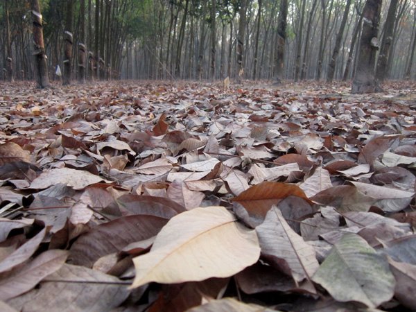 Các vườn cao su tiểu điền của người dân lên đến gần 100 ngàn ha cũng đặt trong tình trạng dễ cháy vì chưa có năm nào cây cao su thay lá đúng vào kỳ nắng gắt như năm nay.